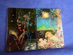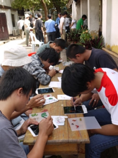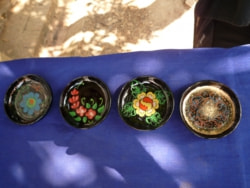 ・学生は、美術学校を卒業後、美術の素養を活かし、経済につなげて行けるよう、絵画や木彫などの授業を受け経験を積んでいるが、漆に関しては授業に組み込まれていなく、ほとんど知識がない。漆表現の幅の広さを体験し、漆に興味を持つことができるよう、漆絵のワークショップを開く事とした。ラオスの伝統的な漆は、黒と弁柄に、下地を盛り上げ金箔を施す技法が主である。絵画に慣れ親しんでいる学生が、日本の漆用の顔料とミャンマーの漆を混ぜ、絵の具のように漆で表現することの可能性を感じてもらいたいと思い、ハガキ大の黒漆塗りの手板を用意し、フレームにも入れられるようにした。