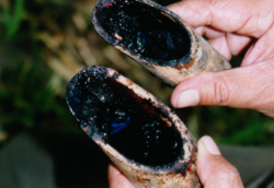 竹筒にたまった漆液(ミャンマーシャン州)