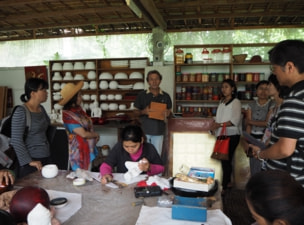 The Stocker brothers showed the group their studio and workshop. They demonstrated various techniques and answered questions about artistic sense and design as well as about worker training and other aspects of their business. Participants from workshops in Myanmar were particularly interested in the materials, designs and techniques used. Discussions were animated. In the evening, there was a barbeque party at Angkor Arts with many friends from the Siem Reap community attending.