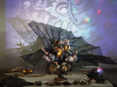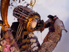 Sculptured-costume performance artist, Sha Sha Higby uses her own uniquely designed body sculptures to create poetic solo performances. Internationally renowned for her evocative and haunting performances, she is influenced by her studies in Asia, Noh Theater, Butoh and shadow puppetry.