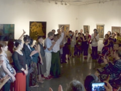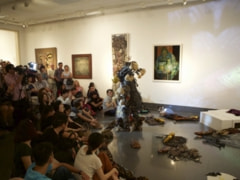 オープニングレセプション後には、シャシャヒグビーによる乾漆の仮面や漆を施した衣装作品を身につけて踊るダンスパフォーマンスが行われた。