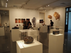 Unfortunately, Hanoi was hit by a typhoon on opening day. But the turnout was above expectations with many local and foreign residents in attendance. Director Sakurako Matsushima, Vietnamese organizer Trinh Tuan, and Mr. Vi Kien Thanh (Director The Department of Fine Art, Photography and Exhibition, Ministry of Culture, Sport and Tourism) made opening remarks. Artists, participants, and the public admired the artworks and discussed lacquer art and culture. It was a fine evening and a good opportunity for those present to get to know one another.